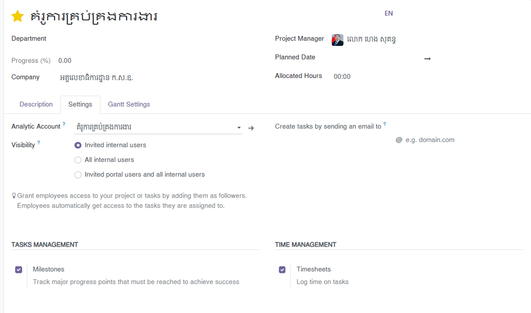 ចំនុច២ គឺជាកន្លែងដែលយើងចូលទៅកំណត់Milestones ឬធ្វើរបាយការណ៍ជាប្រចាំថ្ងៃ ឬតាមពេលវេលាក៍បាន