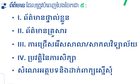 ចំនុច៤៖ គឺជាព័ត៌មានត្រូវបំពេញក្នុងទម្រង់ អ.ម.ត (I រហូតដល់ សំណេរអត្ថបទ)